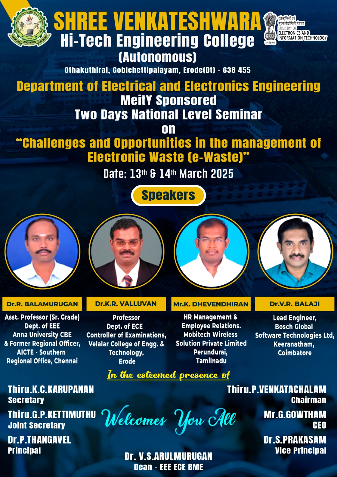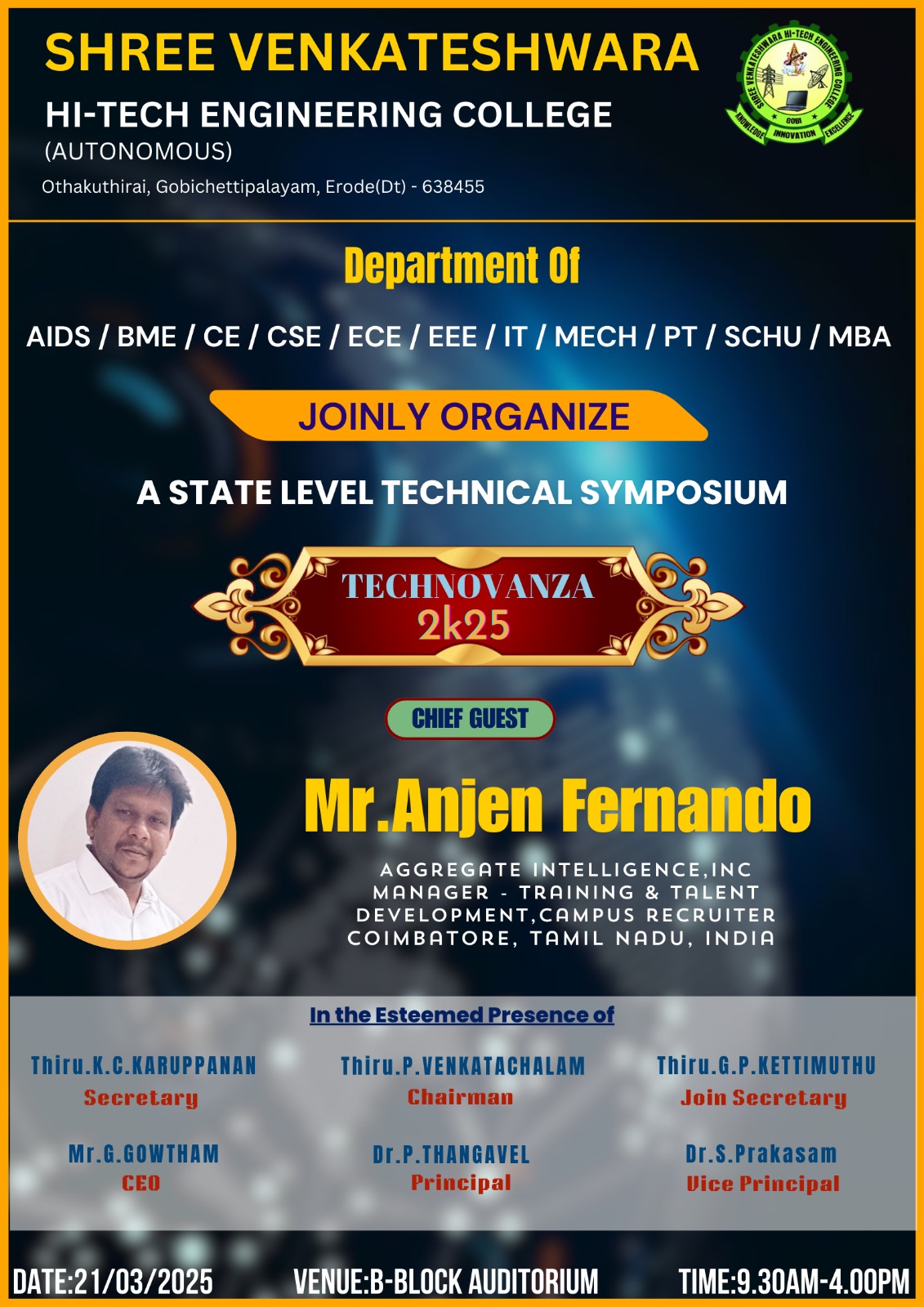 Shree Venkateshwara Hi-tech Engineering College (SVHEC) is approved by AICTE and Affiliated to Anna University, Tamil Nadu. The Institution provides various facilities for successful implementation of curriculum to meet the vision, mission, objectives and goals.